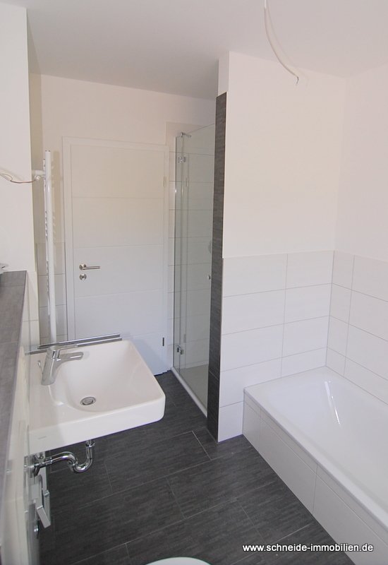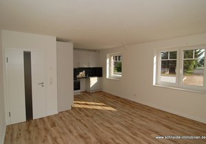Die Wohnung ist ausgestattet mit einer Einbauküche (inkl. E-Herd mit Glaskeramikkochfeld, Dunstabzug/Umluft und Kühl-/Gefrierschrank) sowie einem Vollbad mit Echtglas-Duschabtrennung.