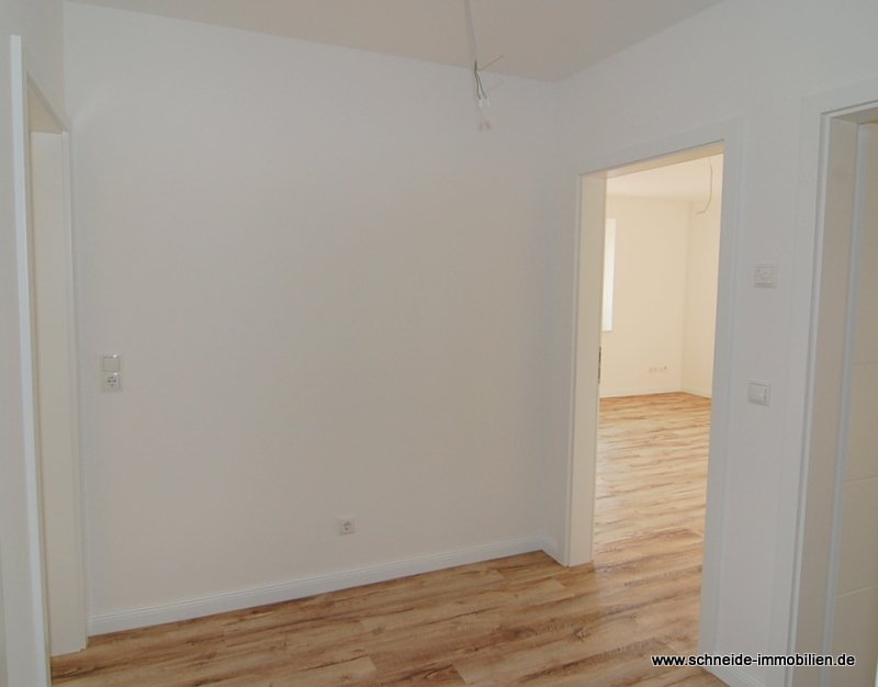 Die Küche, der Flur, die Zimmer sowie der Abstellraum sind mit Design-Vinyl-Böden belegt. Das Badezimmer ist modern gefliest.