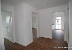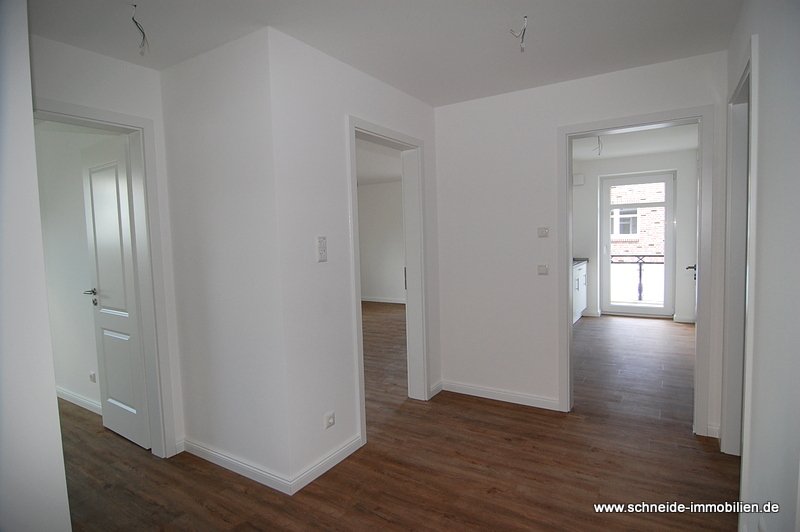 Der Flur, die Zimmer sowie der sich in der Wohnung befindliche Abstellraum haben Design-Vinyl-Böden in Holzoptik. Das geräumige Duschbad (mit Echtglasduschabtrennung) ist gefliest. Hier befindet sich auch der Waschmaschinenanschluss. Digitale Kabel-TV-Anschlüsse sind ebenso in allen Zimmern, wie eine Netzwerkverkabelung. Die Räume haben jeweils einzeln regulierbare Fußbodenheizungen und im Bad ist zusätzlich ein elektrischer Handtuchheizkörper installiert. 3-fach verglaste Fenster reduzieren die Heizkosten.