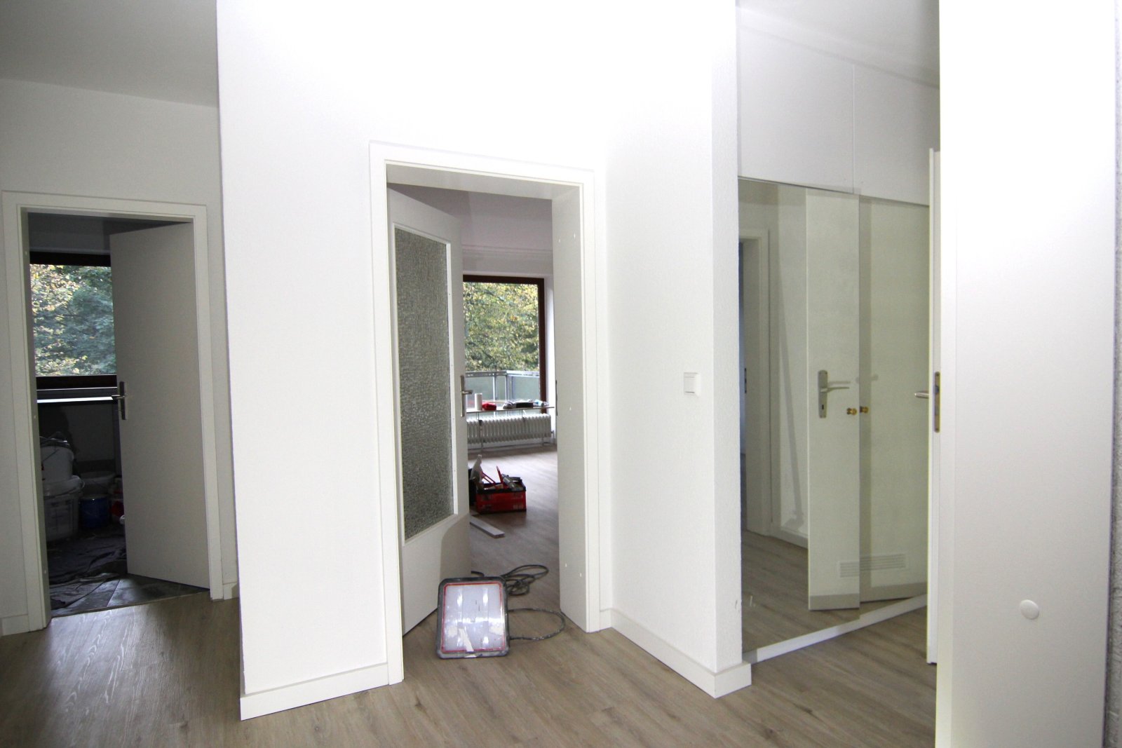 Die 3-Zimmer-Wohnung wurde vor etwa drei Jahren umfassend modernisiert und mit einer ansprechenden Einbauküche (inkl. E-Herd mit Glaskeramikkochfeld, Dunstabzug und Kühlschrank) ausgestattet. In Flur und Wohnräumen wurde ein heller Design-Vinylboden verlegt. Küche, Bad und Gäste-WC sind modern gefliest. Die Türen und Zargen sind weiß lackiert. Ein großzügiger Einbauschrank im Flur bietet praktischen Stauraum innerhalb der Wohnung. Der Balkon ist direkt vom Wohnzimmer aus zugänglich.
