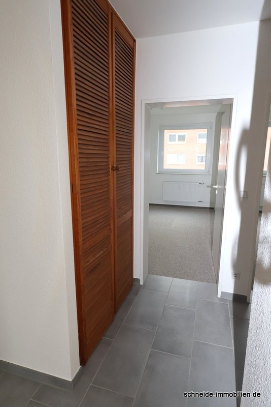 Der Flur, die Küche, das Duschbad und das Gäste-WC sind modern gefliest. Im Flur befinden sich zusätzlich ein Einbauschrank sowie ein Abstellraum.
