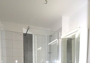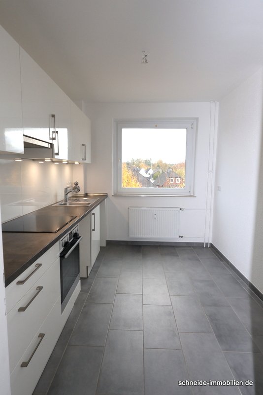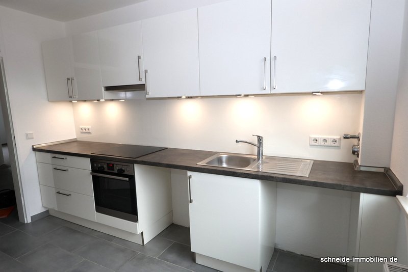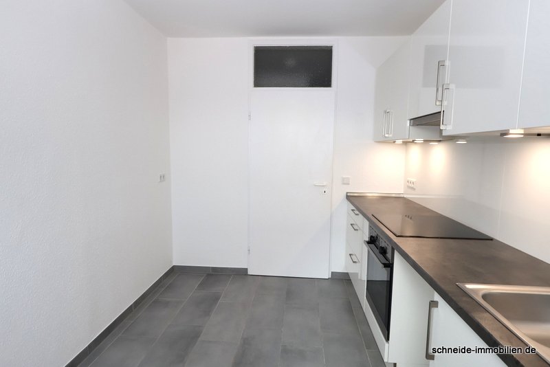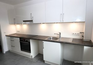 Die Wohnung ist ausgestattet mit einer Einbauküche (inkl. E-Herd mit Glaskeramikkochfeld, Umluft-Dunstabzug, Ober- und Unterschränken sowie einem Duschbad und einem Gäste-WC. Der Waschmaschinenanschluss befindet sich in der Küche.