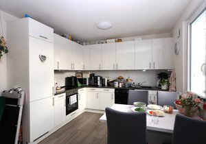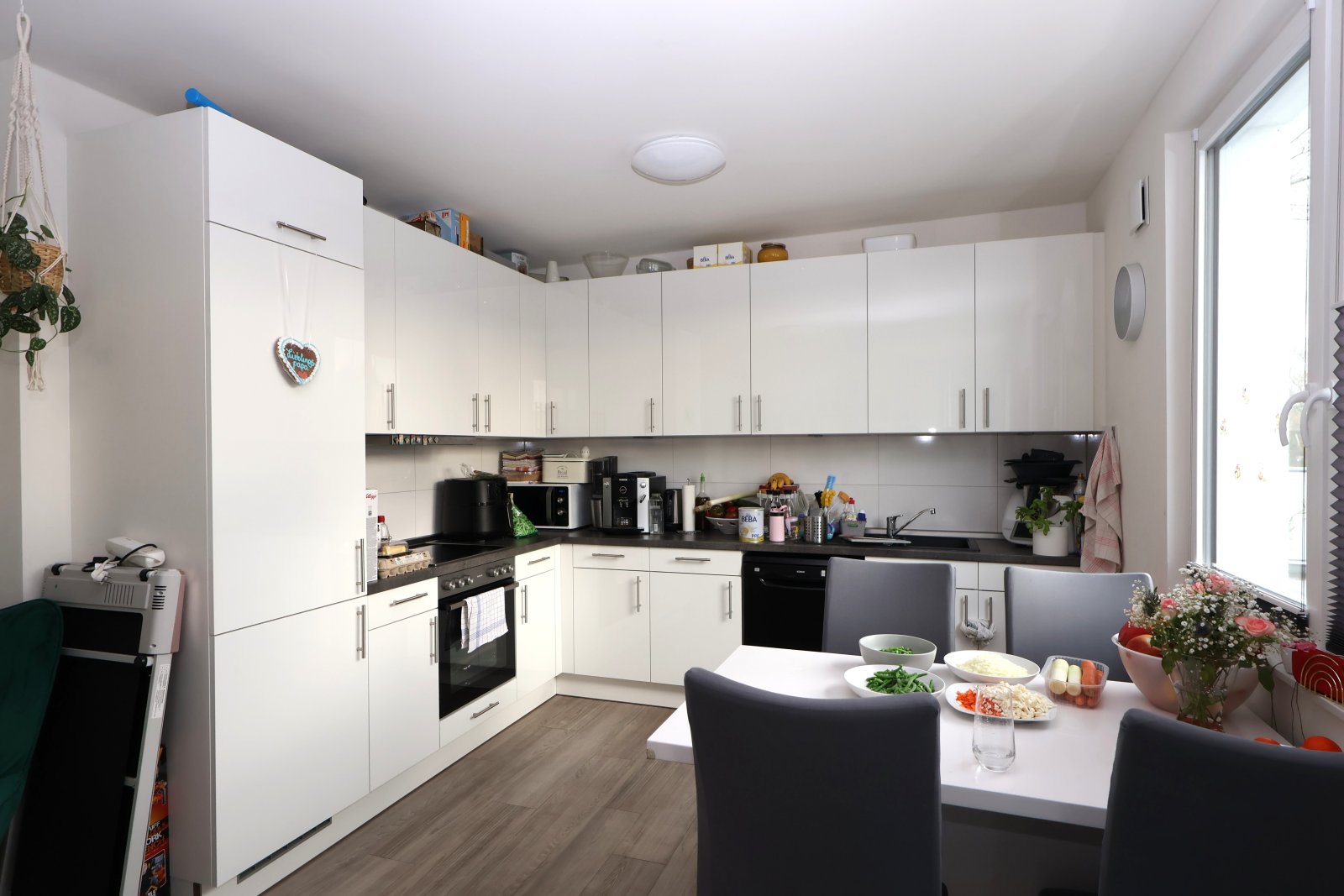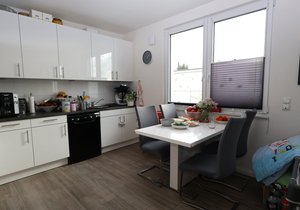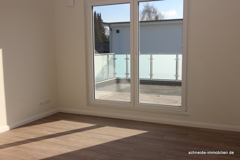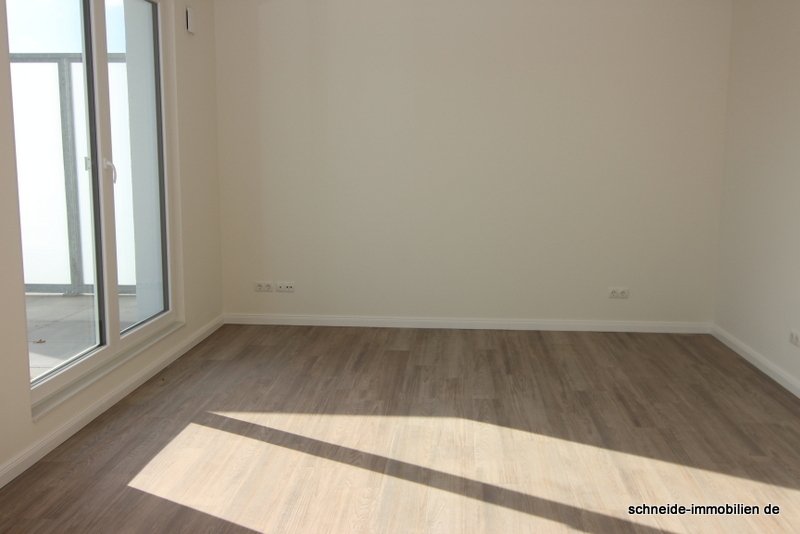 Die Wohnung ist ausgestattet mit einer offen im über 35 m² großen Wohnzimmer installierten Einbauküche (inkl. E-Herd mit Glaskeramikkochfeld, Dunstabzug und Kühl-/Gefrierkombi). Das Duschbad ist ausgestattet mit einer Echtglasduschabtrennung. Wände und Decken sind mit Feinvlies tapeziert und weiß gestrichen. In Flur, Zimmern und Abstellraum wurde ein Vinyl-Designboden in Holzoptik verlegt, während das Bad gefliest ist.