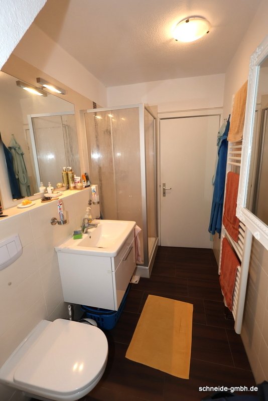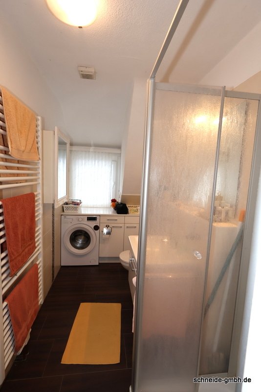 Die Wohnung ist ausgestattet mit einer Einbauküche (inkl. E-Herd mit Glaskeramikkochfeld, Kühlschrank und Umluft-Dunstabzug) sowie einem Duschbad inkl. neuer Duschabtrennung und Waschmaschinenanschluss.