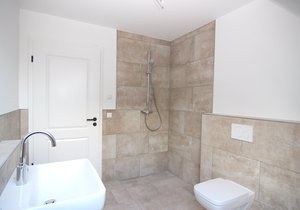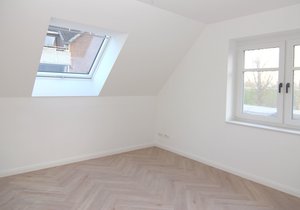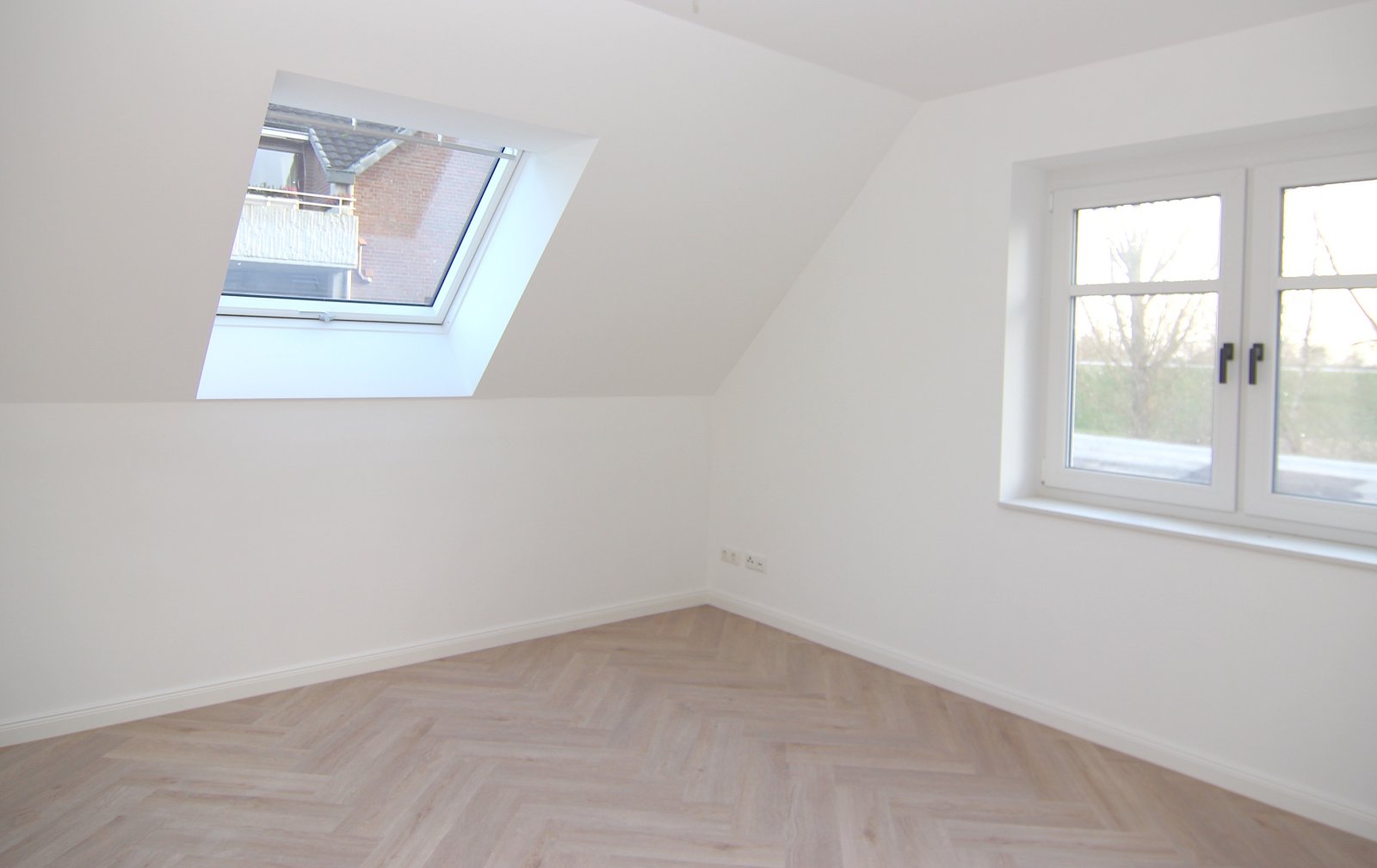 Flur, Abstellraum sowie die Zimmer haben einen geschmackvollen Design-Vinyl-Boden; die Decken und Wände sind mit Feinvlies tapeziert und weiß gestrichen. Das Duschbad ist gefliest und verfügt über ein Fenster und eine Echtglas-Duschabtrennung.