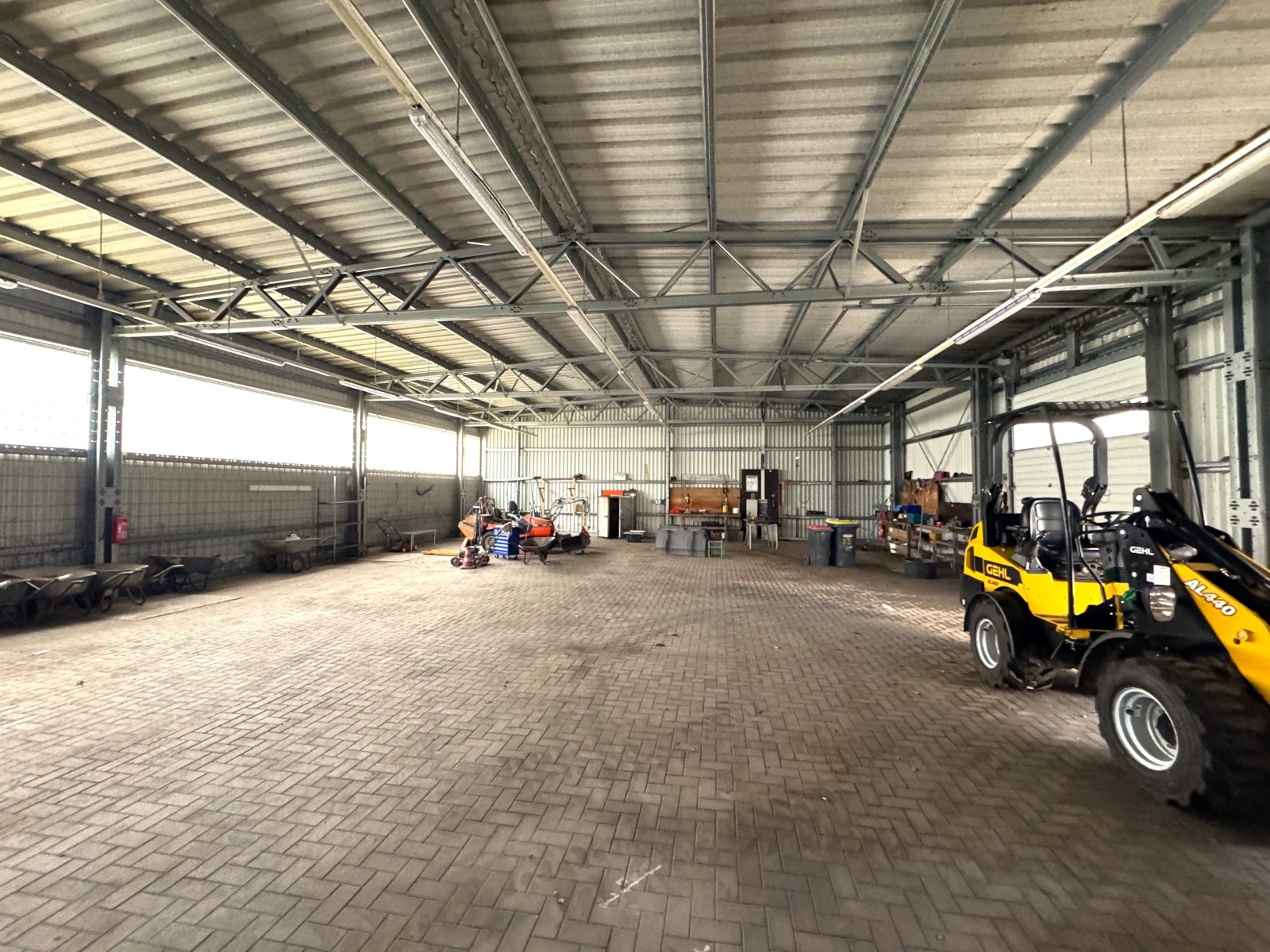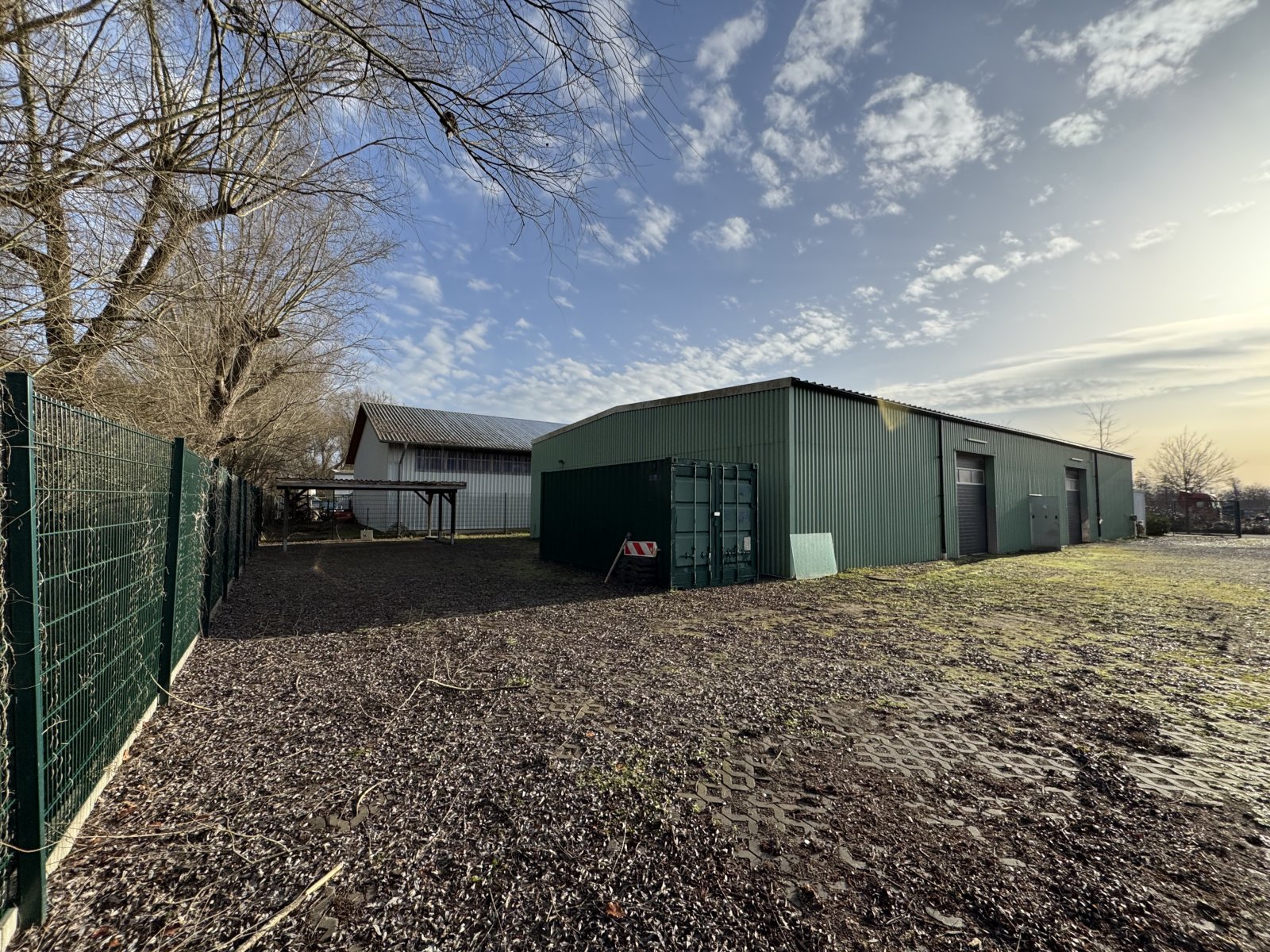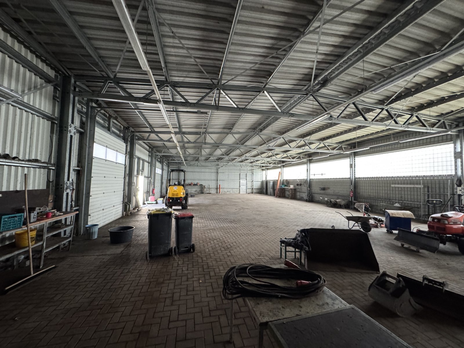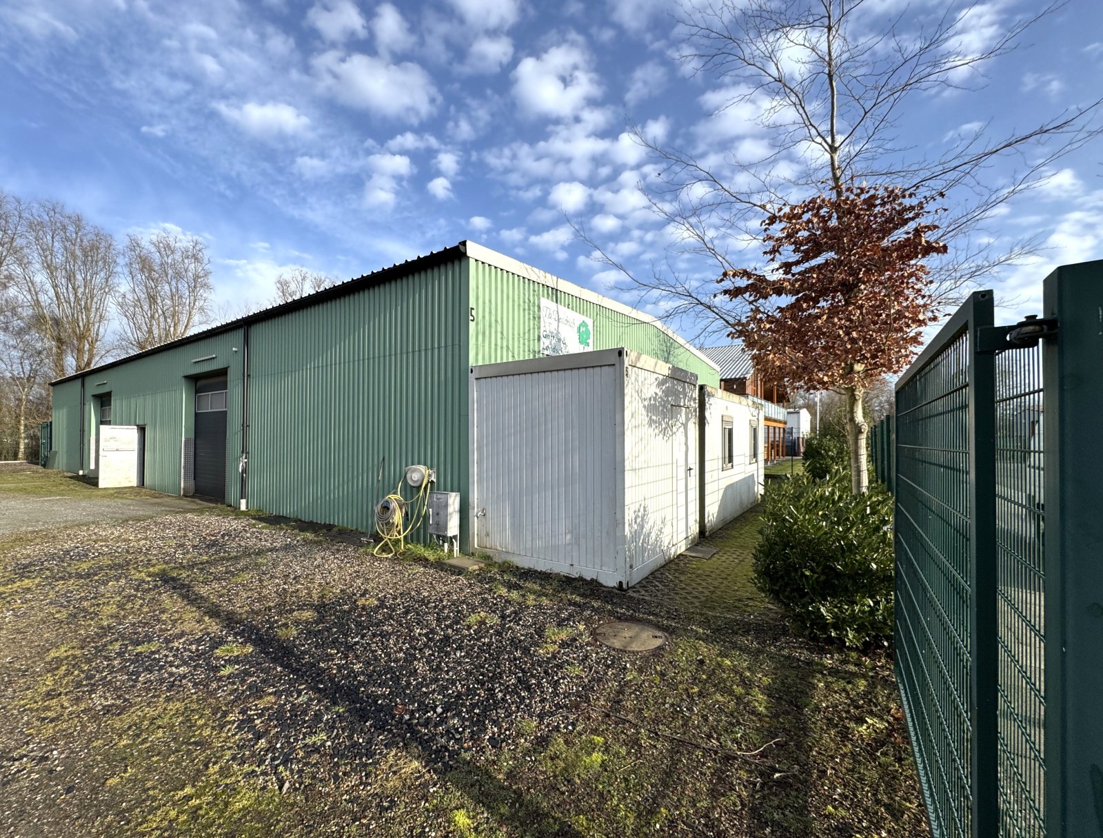 Die Halle verfügt über eine Gesamtfläche von ca. 450 m² und ist in Trapezblechbauweise errichtet. Weiterhin ist die Halle nicht gedämmt und unbeheizt und eignet sich daher sehr gut als Lagerfläche.