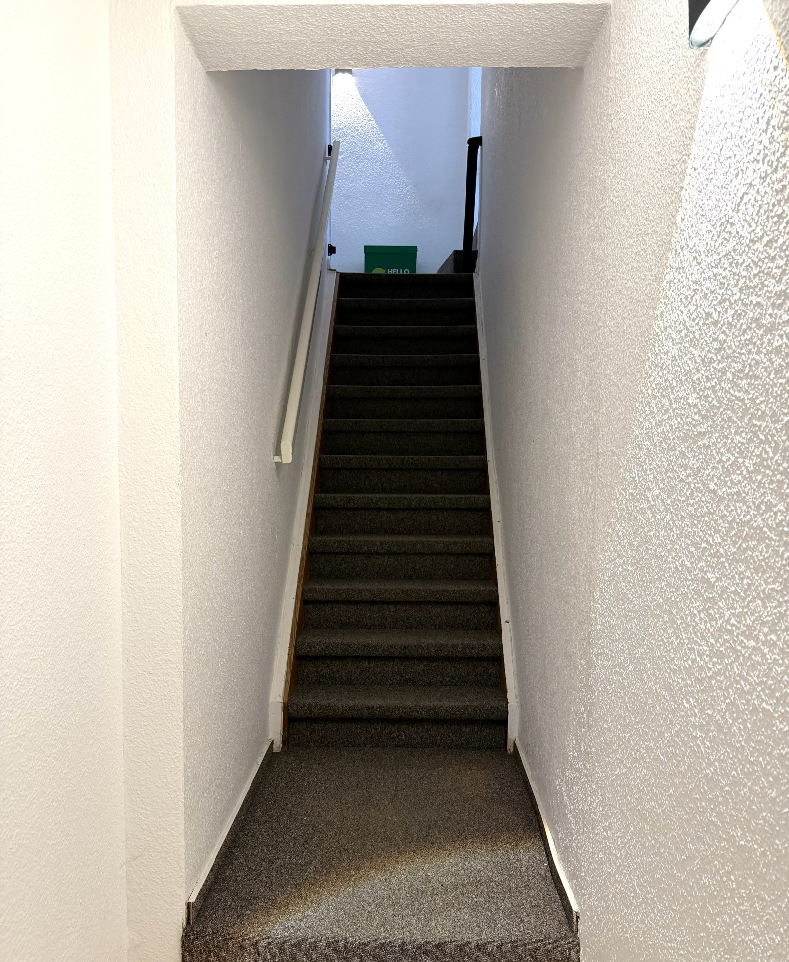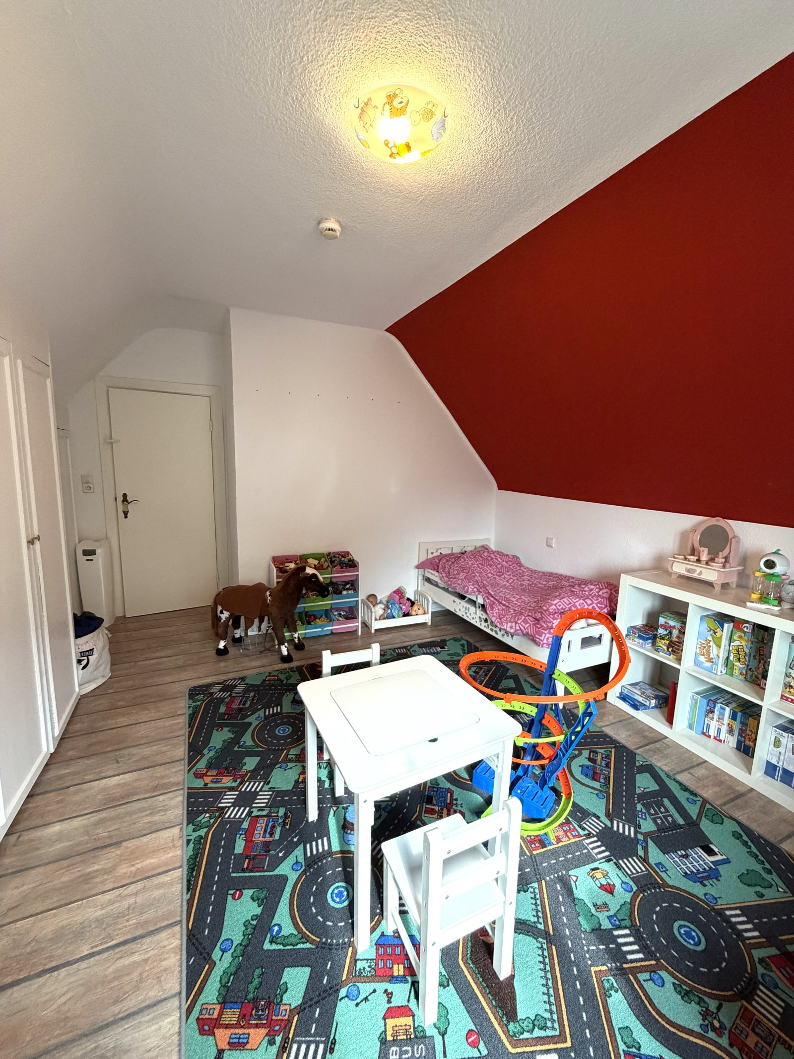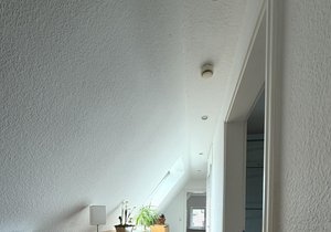 Die zur Vermietung stehende 3‑Zimmer‑Wohnung befindet sich teilweise im Erdgeschoss, überwiegend jedoch im Dachgeschoss eines Zweifamilienhauses.