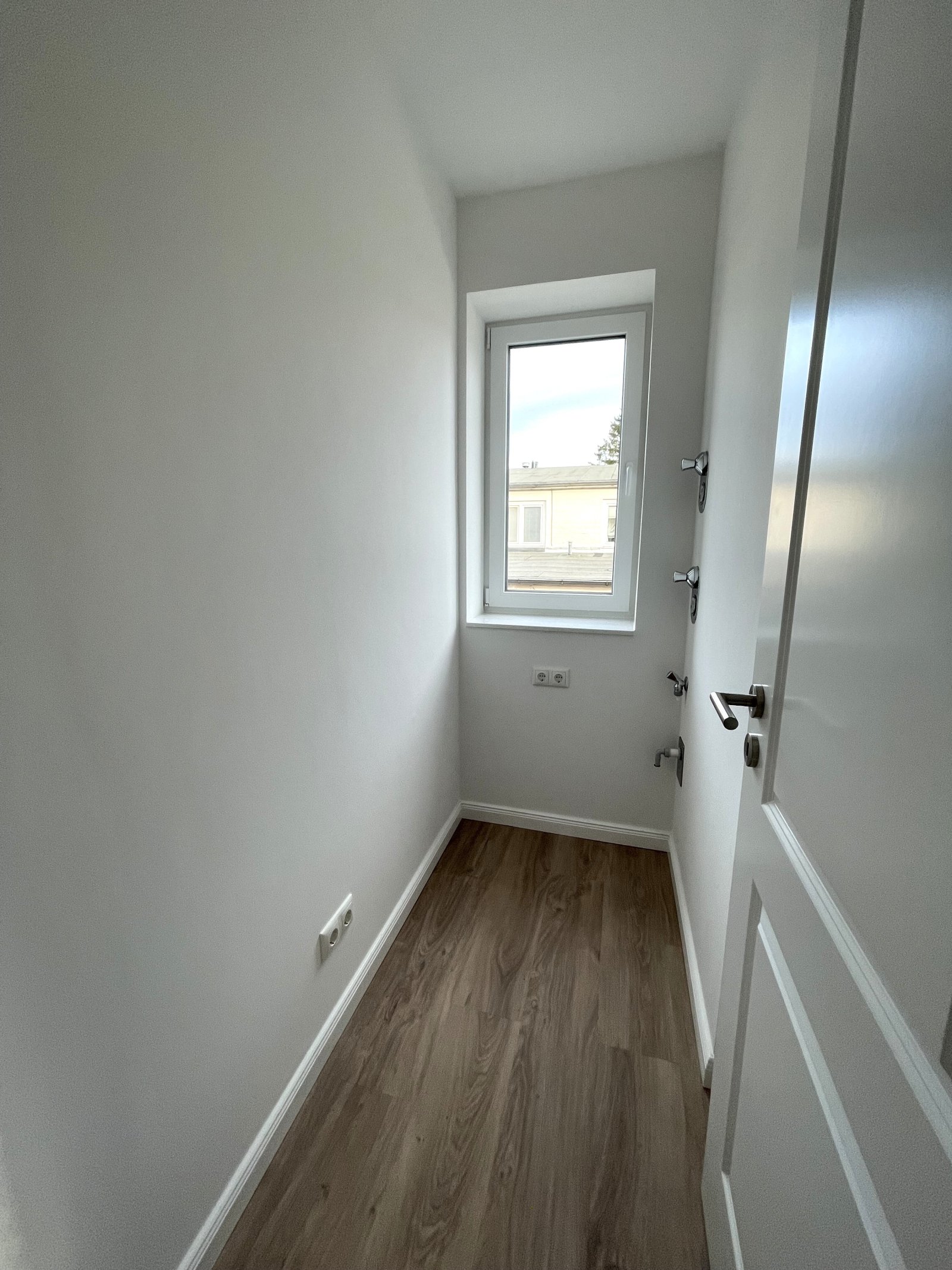 Die Wohnung ist mit einer offenen Einbauküche ausgestattet, inklusive Elektroherd mit Glaskeramikkochfeld, Dunstabzug sowie Kühl-/Gefrierkombination. Das moderne Duschbad verfügt über eine Echtglas-Duschabtrennung und einen Handtuchheizkörper. Decken und Wände werden mit Feinvlies tapeziert und weiß gestrichen. In den Wohnräumen, dem Küchenbereich, Flur und Abstellraum werden Design-Vinyl-Beläge in Holzoptik verlegt. Das Bad ist mit Wand- und Bodenfliesen versehen. Kabel-TV-Anschlüsse sowie eine Netzwerkverkabelung sind in allen Zimmern vorhanden. Die Räume sind jeweils mit einer individuell regulierbaren Fußbodenheizung und 3-fach verglasten Fenstern ausgestattet. Zusätzlich verfügt die Wohnung über einen Innenabstellraum, einen Außenabstellraum sowie einer Terrasse.