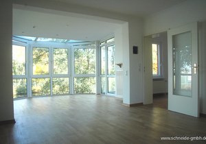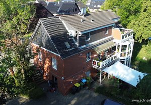 Die Gesamtwohnfläche beläuft sich auf ca. 245 m², hinzu kommen rund 55 m² Nutzfläche. Das Haus ist in drei Wohneinheiten aufgeteilt, die sich jeweils über eine komplette Etage erstrecken. Besonders hervorzuheben sind die lichtdurchfluteten Wintergärten im Garten- und Erdgeschoss mit direktem Blick auf die Dove-Elbe sowie der Balkon der Dachgeschosswohnung.