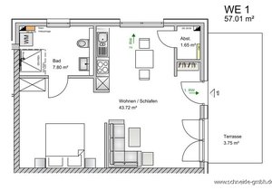 Die Wohnflächen reichen von ca. 54 m² bis ca. 109 m² und bieten Raum für individuelle Wohnideen. Offene Grundrisse, lichtdurchflutete Räume und moderner Wohnkomfort zeichnen jede Einheit aus. Der Vollkeller des Hauses hält für jede Wohnung einen separaten Abstellraum bereit und bietet zusätzlich gemeinschaftliche Flächen - perfekt für Fahrräder, Technik oder Hobbys. Dank der Ausführung als WU-Wanne (wasserundurchlässiger Beton) ist der Keller optimal vor Feuchtigkeit geschützt.