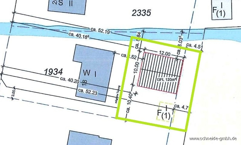 Laut positivem Bauvorbescheid liegt das Grundstück im Geltungsbereich des § 34 BauGB. Eine Bebauung mit einem Einzelwohnhaus und einer Grundfläche von 120m² ist gemäß vorliegenden Vorbescheid möglich (siehe Lageplan).