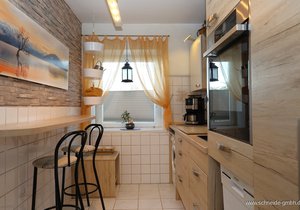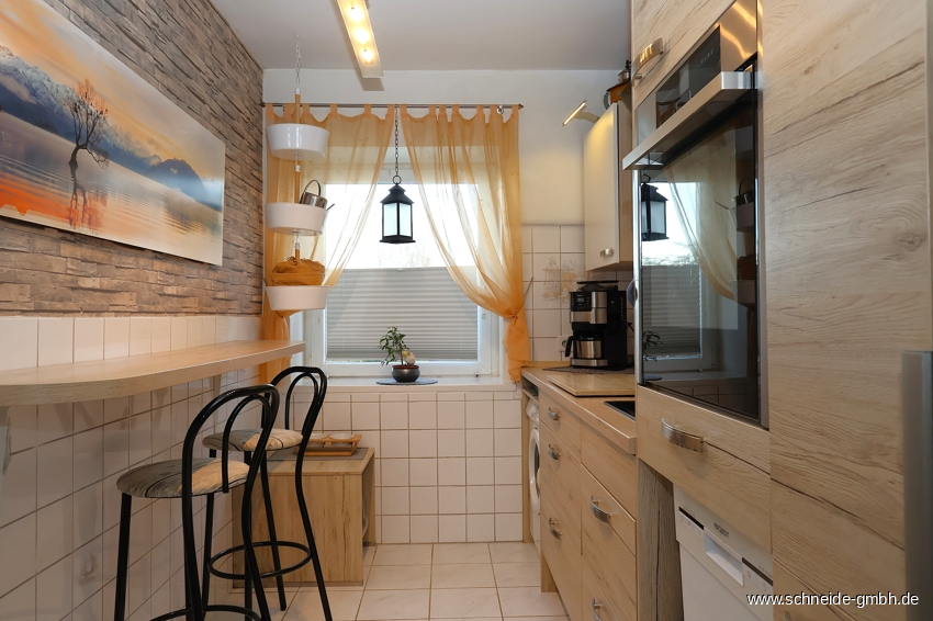 Die Einbauküche wurde im Jahr 2019 erneuert und präsentiert sich in heller Holzoptik. Sie ist funktional ausgestattet und bietet zudem Platz für eine kleine Frühstückstheke. Das Badezimmer wurde 2014 umfassend umgebaut und saniert. Zweifach verglaste Fenster aus dem Jahr 2007 sowie erneuerte Heizkörper (2015) sorgen für einen soliden und zeitgemäßen technischen Standard.