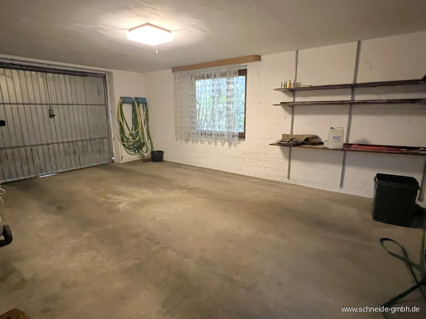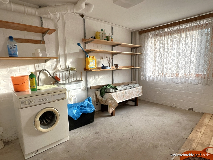 Der Hauswirtschaftsbereich befindet sich im Keller und bietet neben der Heizungsanlage einen weiteren Raum, eine Waschküche sowie eine Garage mit Zugang zum anliegenden Garten.
