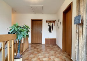 Der Dielenbereich bietet ausreichend Platz für eine Garderobe und verbindet das Erdgeschoss mit dem Kellergeschoss über eine zentral platzierte offene Holztreppe.