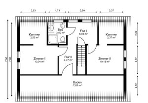 Vom Flur im Erdgeschoss führt eine geschlossene Holztreppe in das ausgebaute Dachgeschoss mit ca. 40 m² Wohnfläche. Zwei Zimmer jeweils mit einer praktischen Abstellkammer, Flur und ein modernes Duschbad aus 2001 stehen hier für weiteren Wohnraum zur Verfügung. Ein praktischer Bodenraum dient als Abstellfläche. Die nachträglich eingebaute Dachgaube aus 2003 verleiht dem Flur viel Licht und einen schönen Ausblick.