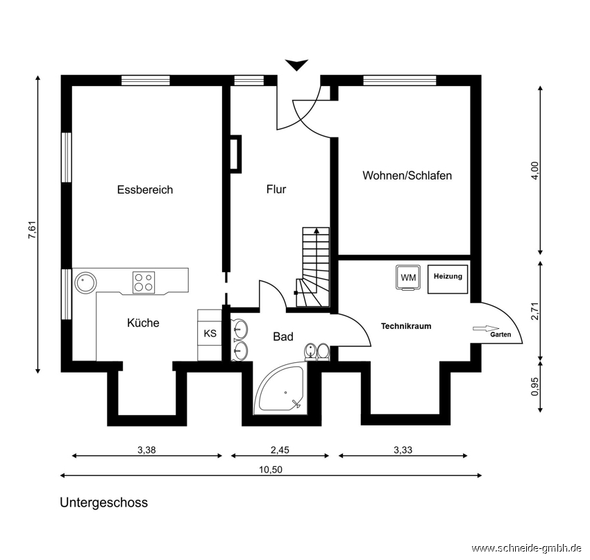 Das wohnlich ausgebaute Untergeschoss mit ca. 64 m² ist von der Gartenseite ebenerdig zugänglich und verfügt über eine Deckenhöhe von ca. 2,50 m. Alle Räume sind beheizt und eignen sich ideal als separate Wohneinheit oder zusätzlichen Wohnraum und wurden 2001 modernisiert. Es bietet eine gemütliche Wohnküche, ein Schlafzimmer und ein modernes Wannenbad mit zwei Waschbecken, Bidet und WC und dem Heizungs-/Technikraum.