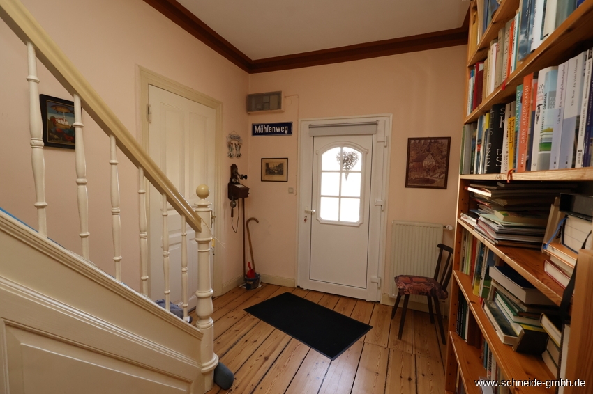 Erwähnenswert ist abschließend zu dem Untergeschoss, dass der straßenseitige Bereich unter Geländeniveau liegt und das Geschoss gartenseitig ebenerdig ist. Dadurch sind die Räume angenehm hell und voll nutzbar. Baujahrestypisch ist teilweise Feuchtigkeit im Untergeschoss vorhanden.