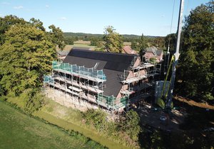Die Räume erhalten jeweils einzeln regulierbare Fußbodenheizungen, welche für eine gleichmäßige und angenehme Wärme sorgen. Dreifach verglaste Fenster in Kombination mit einer dezentral verbauten Lüftungsanlage mit Wärmerückgewinnung unterstreichen die energetische Bauweise. Zusätzlich wird auf dem Dach des Wohnhauses eine Photovoltaikanlage als Unterstützung für die Luft-/ Wasser-Wärmepumpe und dem Allgemeinstrombedarf verbaut.